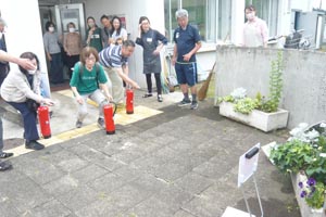 | サークル意見交換会 | 水消火器で消火訓練 | |||||